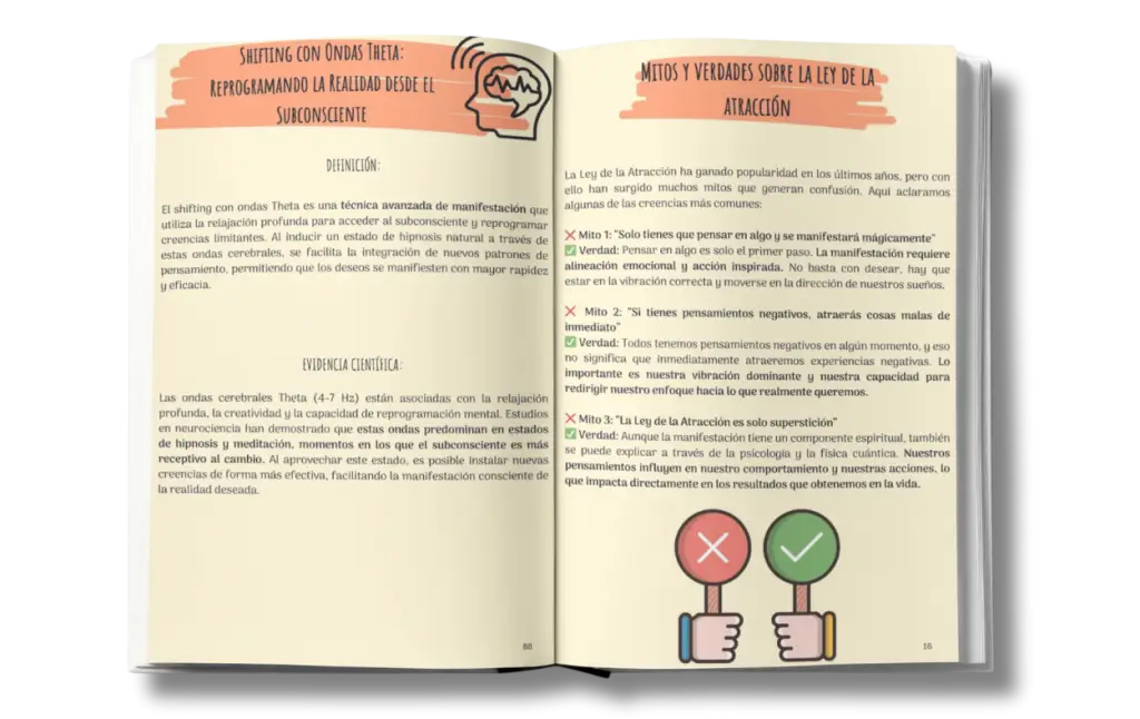 El Manual de Manifestación 2.0 nace precisamente de esa necesidad: entregarte la información precisa, simplificada y profunda, para que dejes de quedarte solo en la teoría y empieces a manifestar resultados reales.
